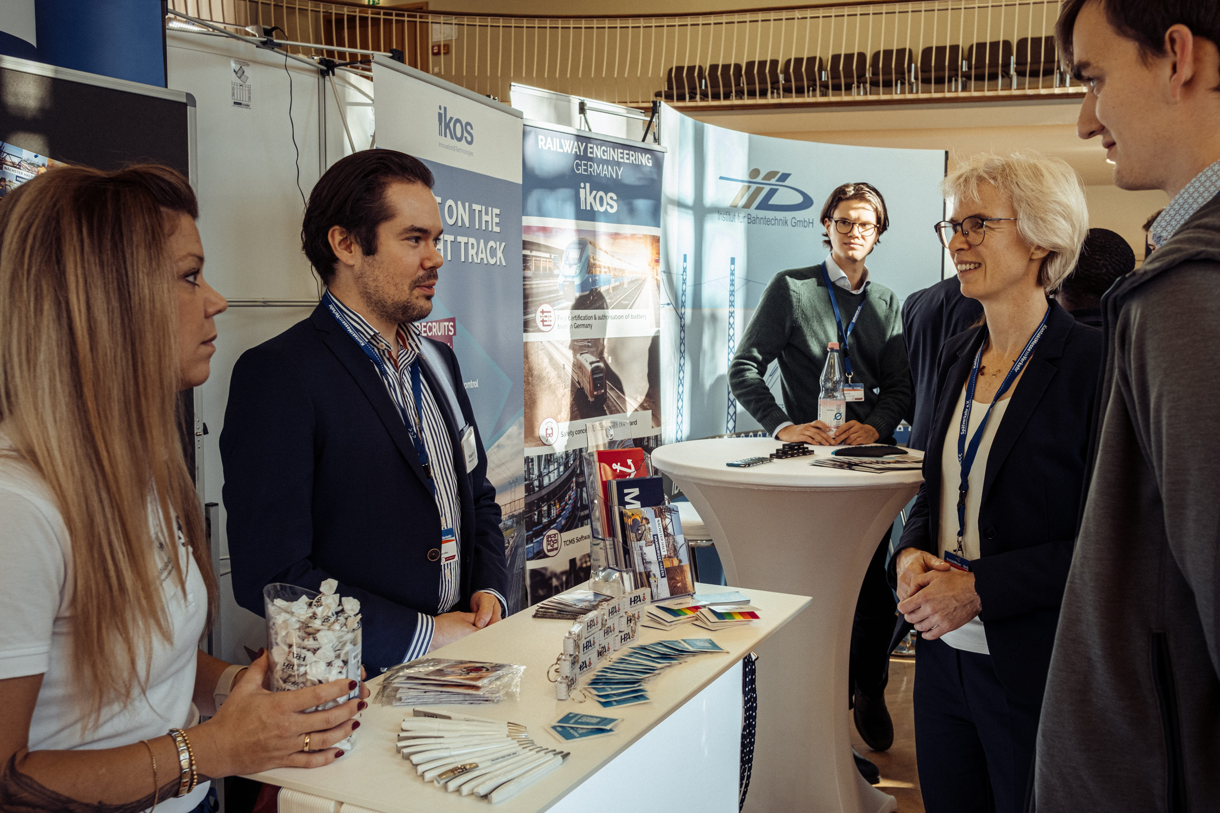Eva Müller und Luca Valente, tätig im Recruiting und Business Development der Firma IKOS Innovation & Technologies, sind seit vielen Jahren als Ausstellende auf der KontaktMesse zu finden und haben auch in diesem Jahr wieder einen positiven Eindruck erhalten. Die Messe sei schlichtweg der ideale Ort, um mit Verkehrsinteressierten in Kontakt zu treten und sich zu vernetzen. Für das international agierende Ingenieurbüro im Bereich Eisenbahntechnik ist es besonders wichtig, Ingenieur:innen zu finden, die sich für die Bahn begeistern lassen und Interesse an nachhaltiger Mobilität zeigen.