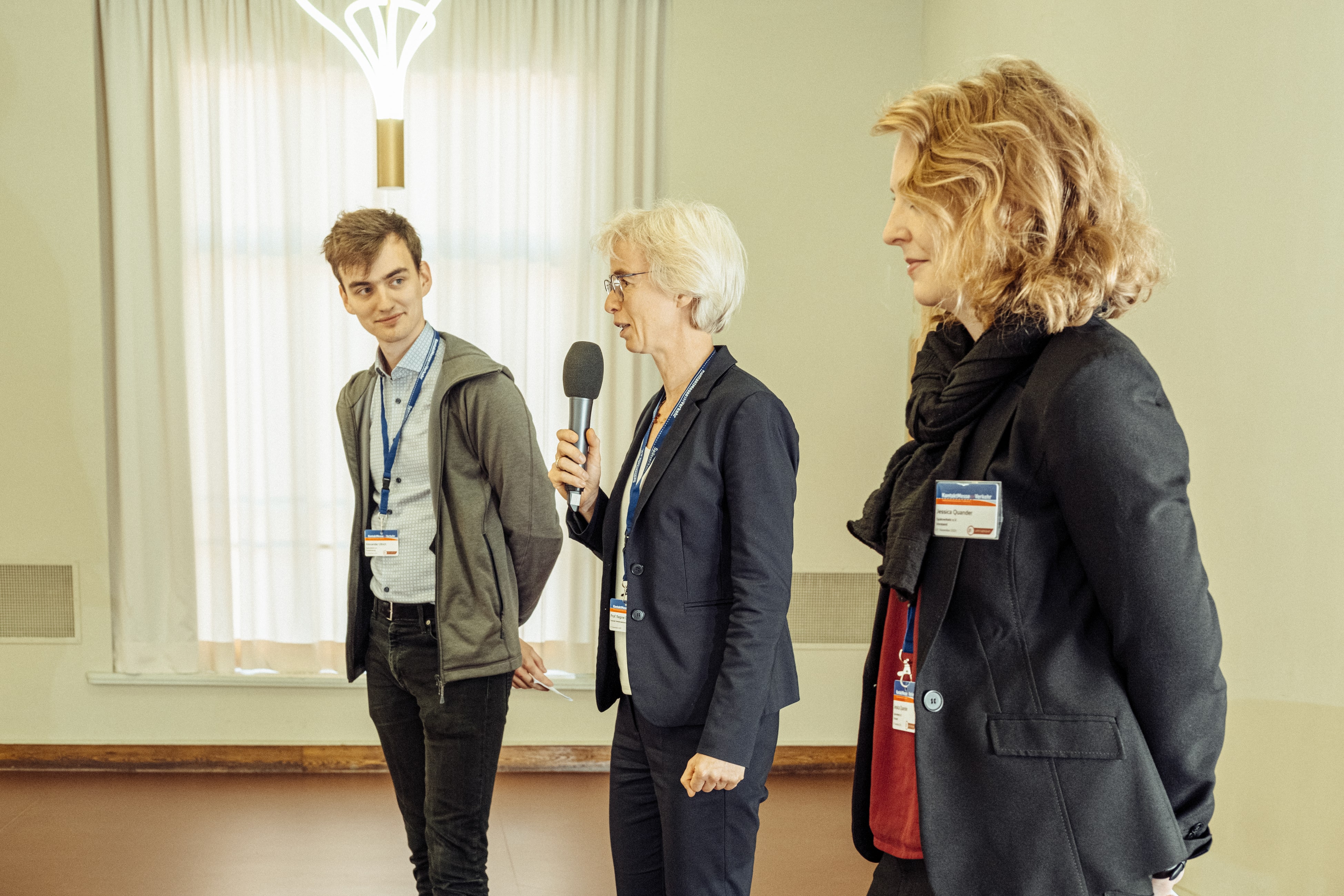 Die Vertreterinnen der Mitteldeutsche Flughafen AG, Fiona Warmuth (Auszubildende zur Industriekauffrau) und Rebecca Linde (beschäftigt in der Personalverwaltung), machten auf ähnliche Voraussetzungen bei zukünftigen Arbeitskräften ihrer Firma aufmerksam. Das Unternehmen sei vielfältig in allen Bereichen aufgestellt und heiße von kaufmännischer Ausbildung bis Absolvent:innen des Verkehrsingenieurwesens jede und jeden willkommen.