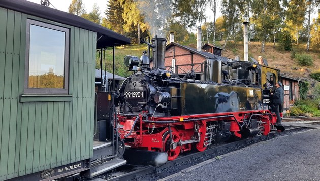 Von Jöhstadt starteten auch die Sonderzüge der Pressnitztalbahn. Mit einem Dieselzug ging es nach Schmalzgrube für bahnbetriebliche Übungen, wie Bremsprobe durchführen und folgeabhängige Weichen zu bedienen. Ein Höhepunkt war der Dampfzug, der die Teilnehmer zur Abendveranstaltung im Forellenhof fuhr.