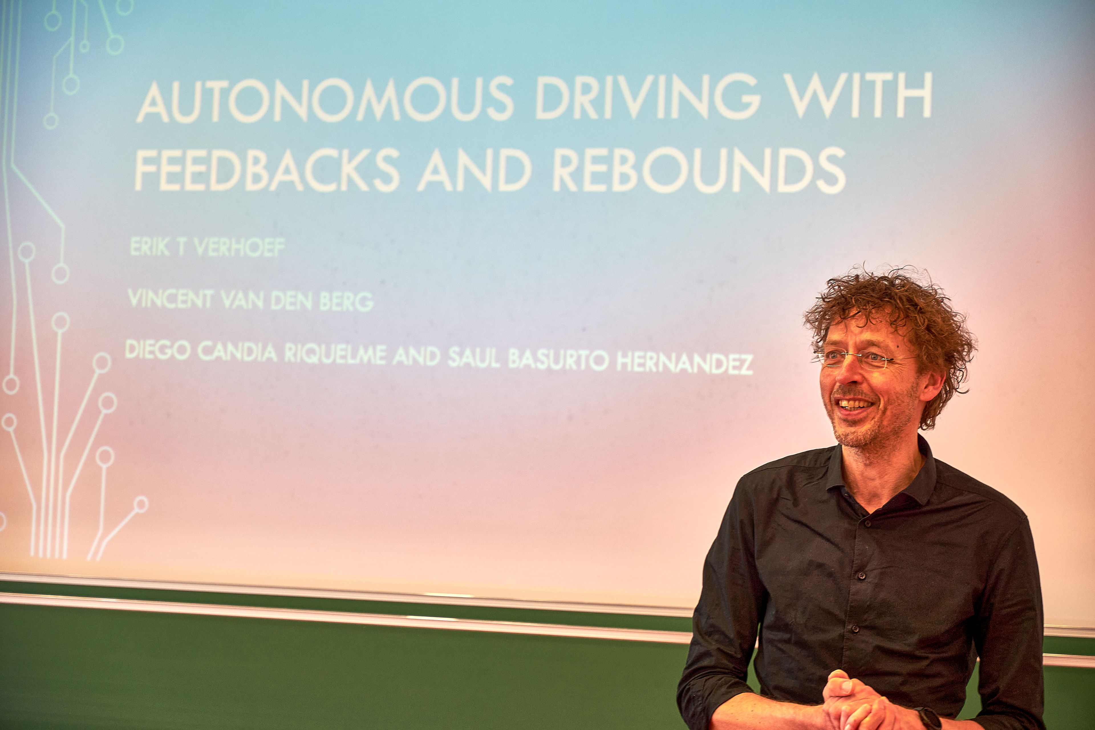 After a brief introduction by the host Georg Hirte, a keynote by the world-renowned expert for transport economics Erik Verhoef (VU Amsterdam) followed. In his presentation on “Autonomous driving with feedback and rebounds” he made very clear which benefits are to be expected from AV – and which are not. By analyzing feedback effects such as behavioral adaptation, he concluded with a warning of too much optimism with respect to potential AV benefits.